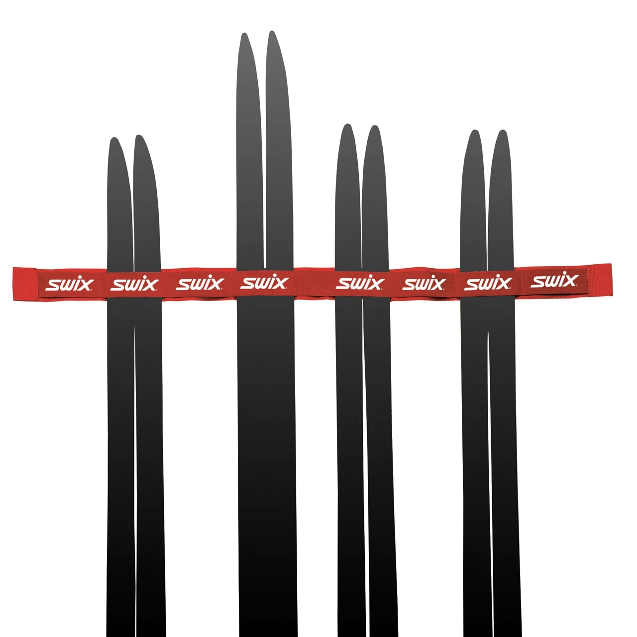 Stropp for lagring av ski pĂĄ vegg. Har plass til 4 par alpinski eller 8 par langrennsski.